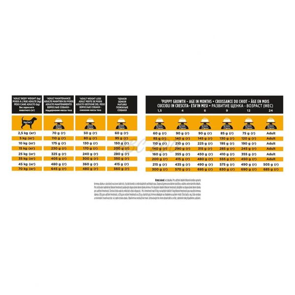 Аналитични съставки: мазнини 12 %, пепел 7 %, фибри 2,5 %, азотни вещества 30 %, EPA и DHA 0,8 %