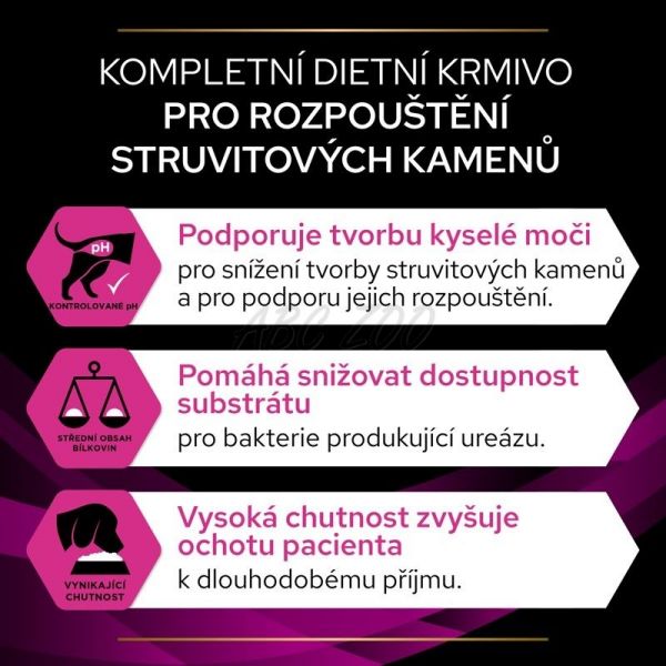 Purina Veterinary Diets е пълноценна диетична храна за възрастни кучета, предназначена за разтваряне на струвитни камъни с свойства, подкисляващи урината и ниско съдържание на магнезий.