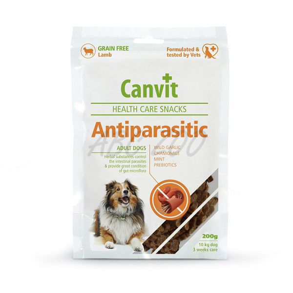 Canvit Health Care Antiparasitic Snack е функционална закуска, предназначена за възрастни кучета за контрол на чревната микрофлора - 200g.