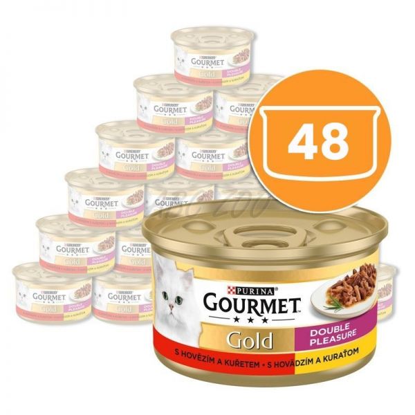 Консерва Gourmet GOLD - гриловани и задушени парчета месо с говеждо и пиле, 48 x 85г