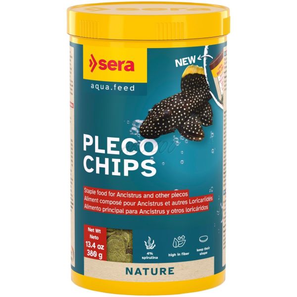 sera Pleco Chips 1000 ml - основна храна за сомчета (Ancistrus) и други видове лорикарии под формата на бързо потъващи чипсове.