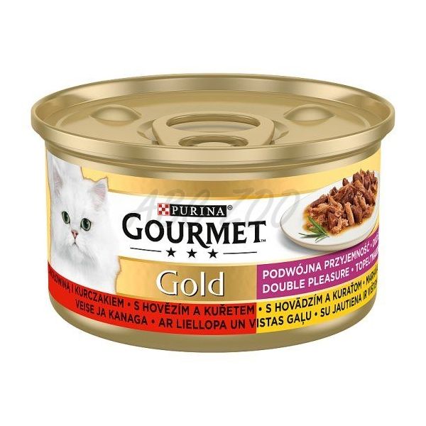 Консерва Gourmet GOLD - гриловани и задушени парчета месо с говеждо и пиле, 85г