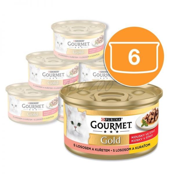 Консерва Gourmet GOLD - парчета в сос с сьомга и пиле, 6 x 85г