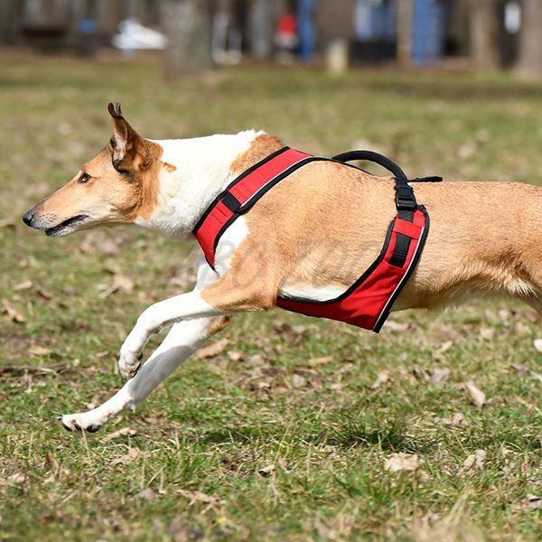 Удобен, напълно регулируем колан EasySport за големи породи кучета в червен цвят. Повече подробности
