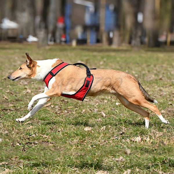 Удобен, напълно регулируем колан EasySport за средни породи кучета в червен цвят. Повече подробности