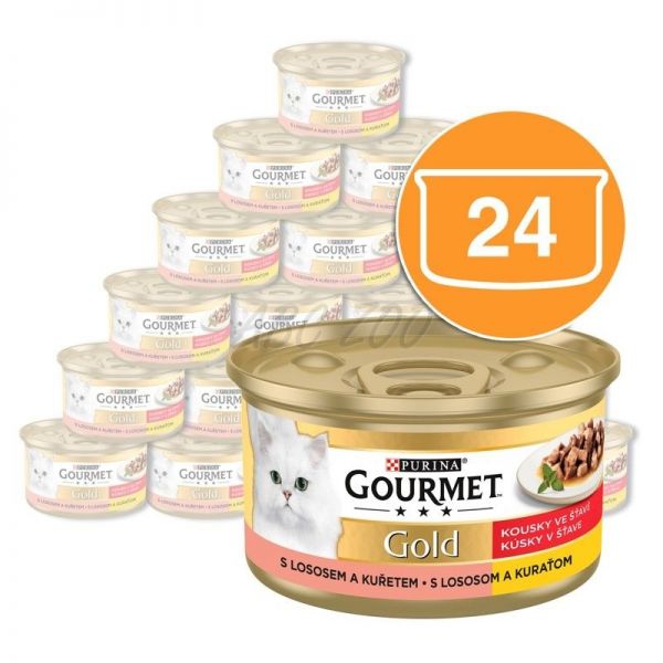 Консерва Gourmet GOLD - парчета в сос с сьомга и пиле, 24 x 85г