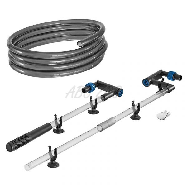 потокът на филтъра лесно и плавно се регулира с помощта на предоставения комплект адаптери, маркучи и отводнителни тръби