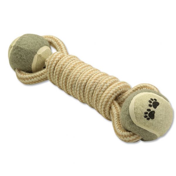 Играчка за кучета за дърпане, с две тенис топки на въже. Повече подробности