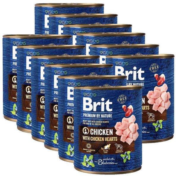 Консерва Brit premium by Nature Пиле и Сърца 12 x 800 г