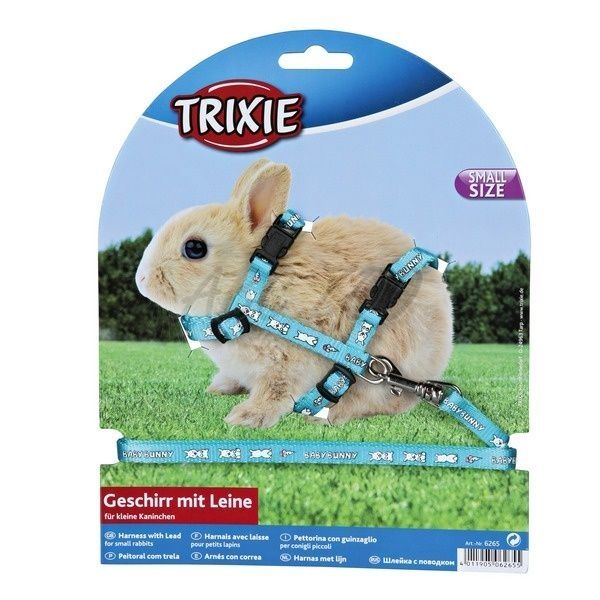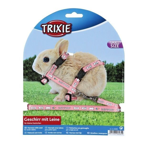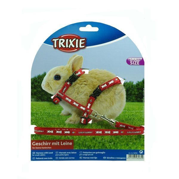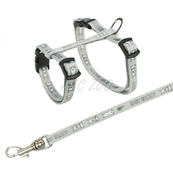 Коланът с повода е изработен от найлон в сив цвят с надписи Baby Bunny и мотиви на малки зайци. Поводът се прикрепя с карабинка към колана, чийто размери могат да се регулират.