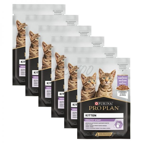 PURINA® PRO PLAN® Kitten HEALTHY START с пуешко месо в сос е пълноценна храна за котенца. Помага за поддържане на правилното развитие на зрението и мозъка.