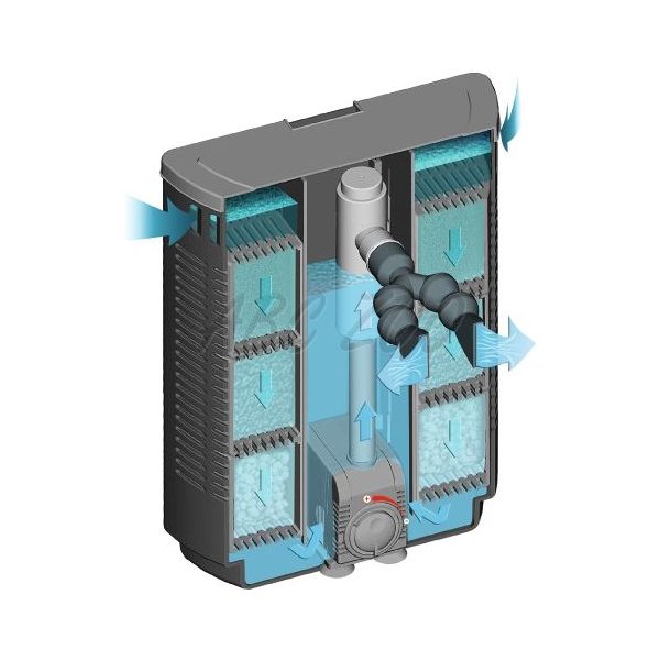 Водата, която е биологично пречистена и обработена с UV-C светлина, се връща в аквариума чрез гъвкав разпределител. Плоските изходни дюзи осигуряват по-добро смесване на водата в аквариума.